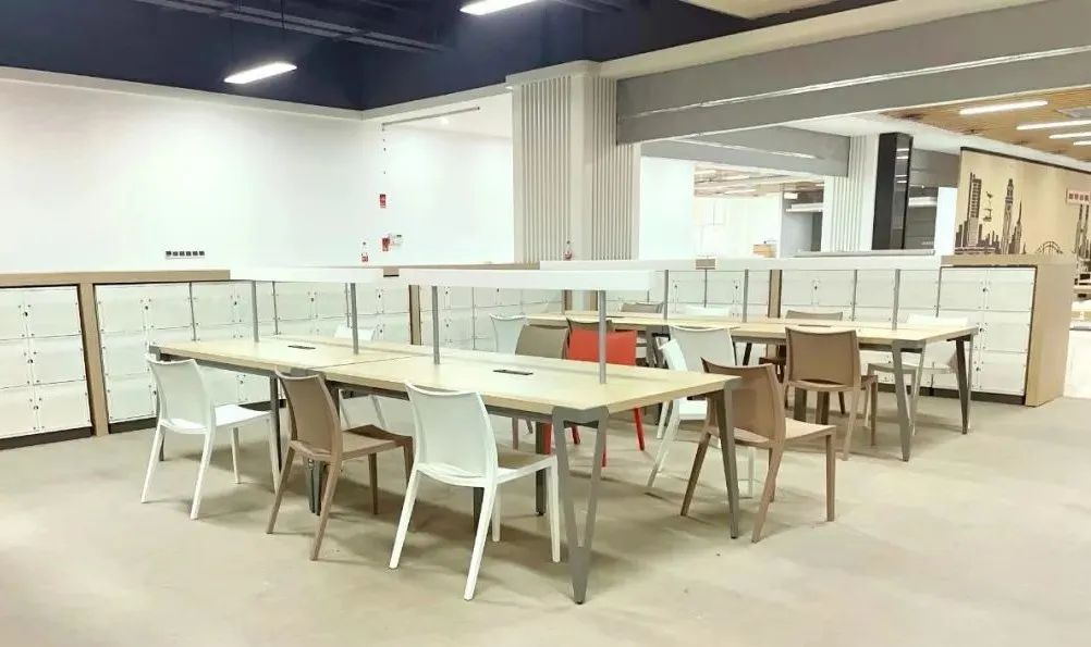 利用开放式课桌,方便同学们结伴自习、互相监督前进。同时节省出一定的空间则用来扩大走道,方便流量巨大的学生群体同时流通。