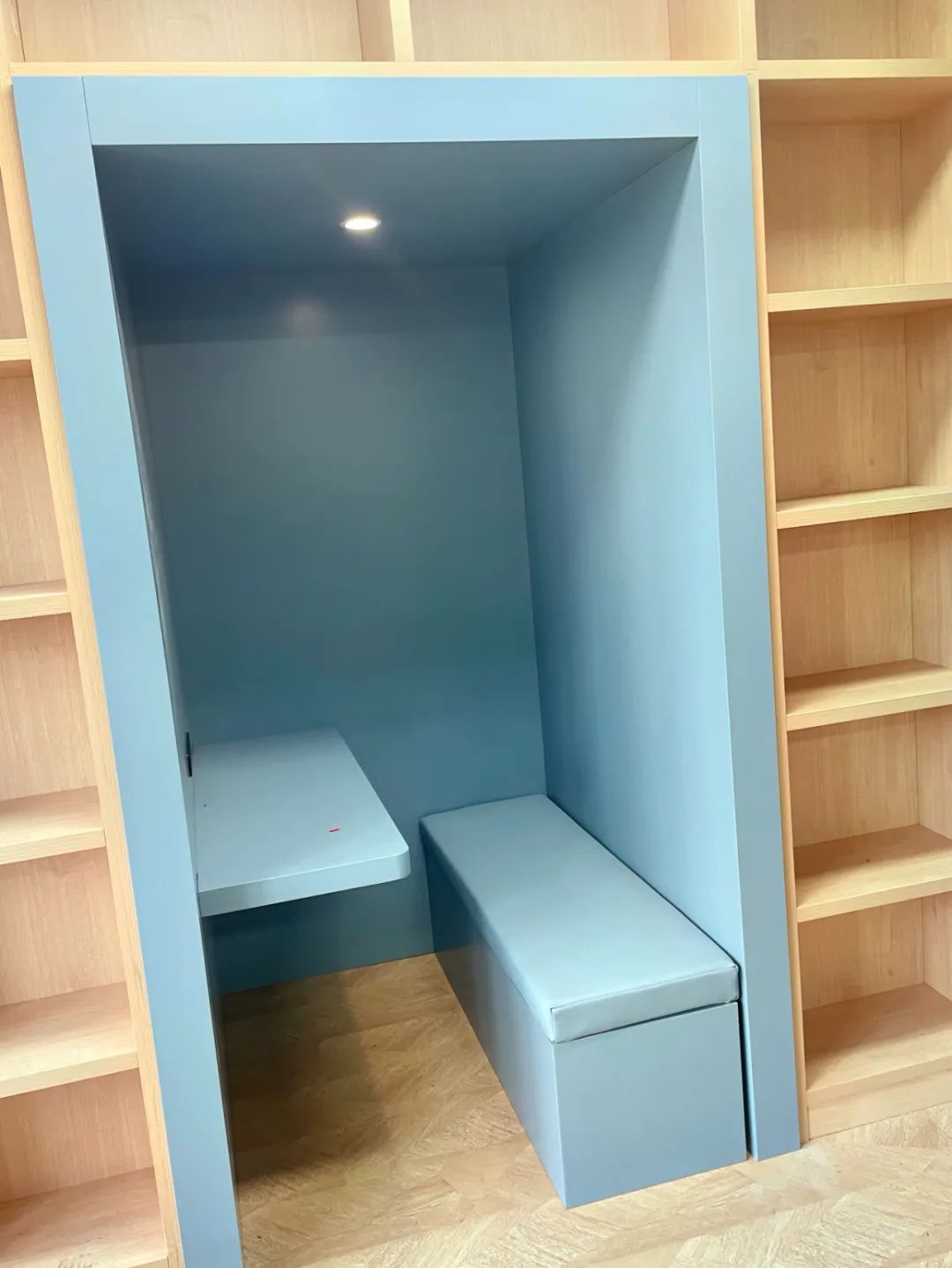 学生正处于对世界充满了好奇、身体和智力都处于发育上升阶段,他们天然对于撞色、亮色色彩更敏感,对于色彩的灵活运用和搭配更容易被吸引。因此在色彩的灵动与图书馆安静的环境上,二者相加有动静结合的奇妙感。
