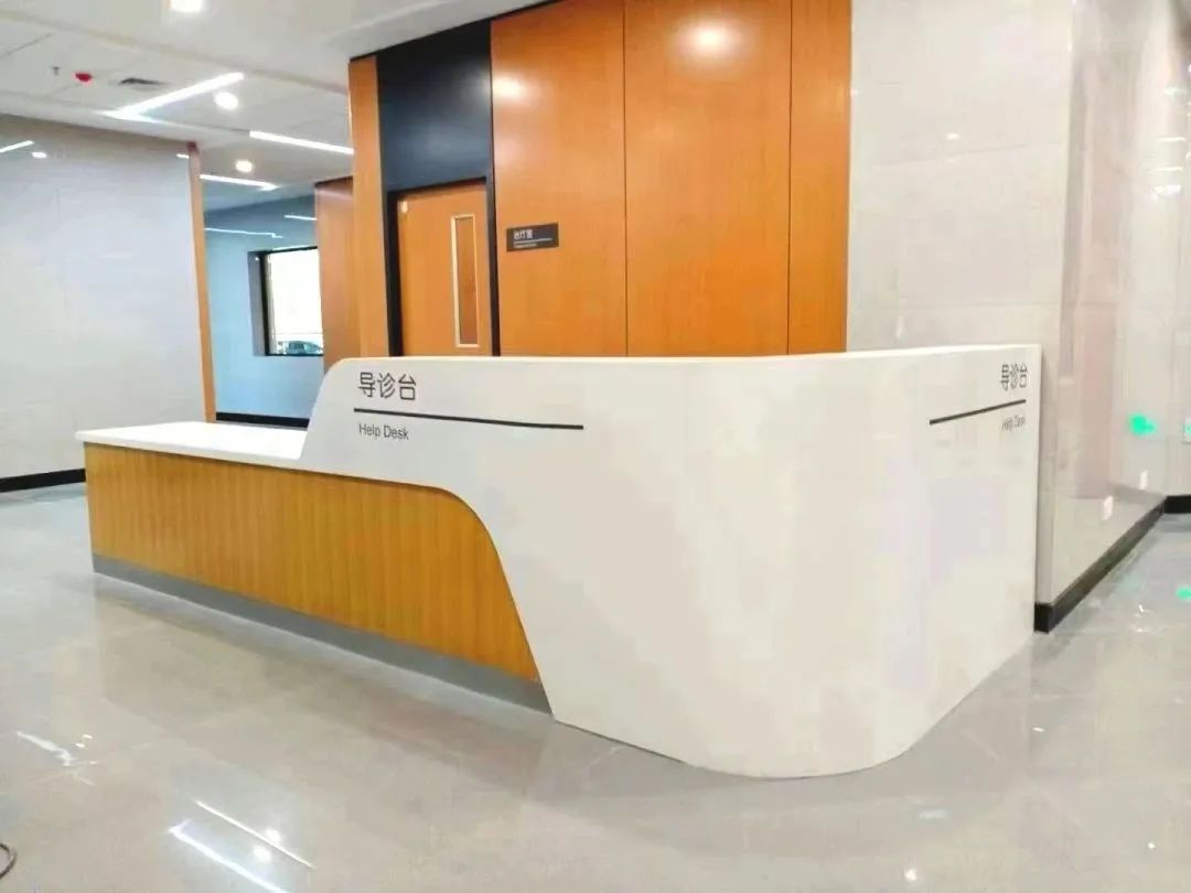 医院导医台是医院展示服务形象的重要平台,华亚·椿萱居在设计上从人性化出发,将人与人的关系放在首位,打造出一款外观新颖,时尚简洁的导医台,充分体现出“以患者为中心”的设计理念。
