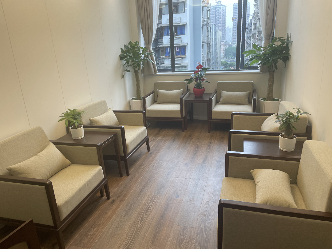 稳重大方的的造型设计与干净的米白色相搭配,以及柔软而舒适的坐垫,让洽谈过程更加愉快。产品采用实木框架、使用环保涂料,打造更加安全美观的洽谈室。