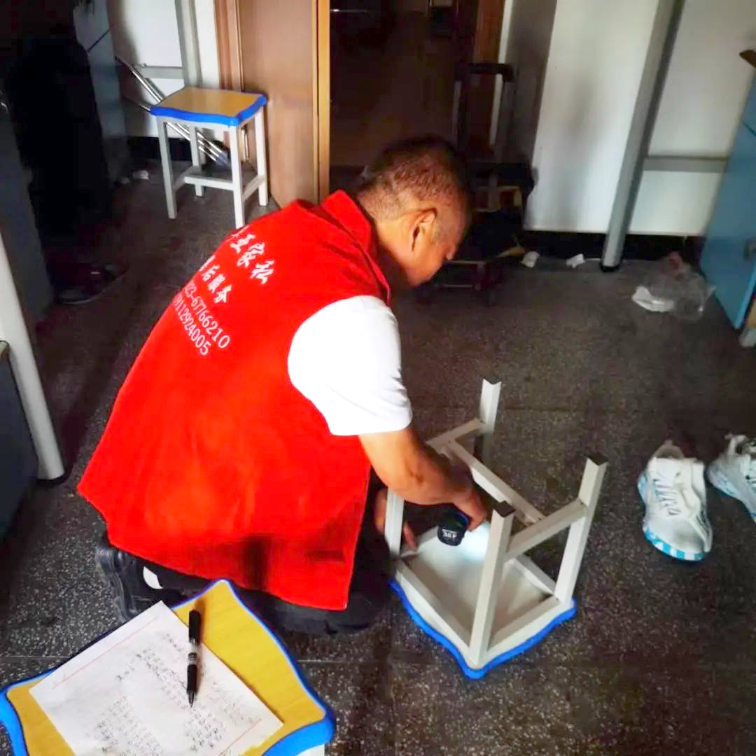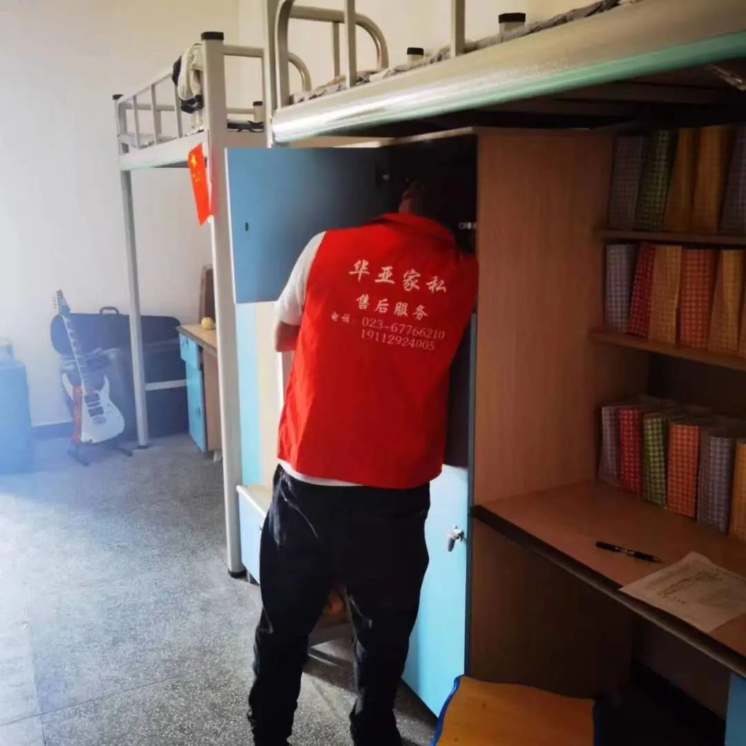 售后工作人员对华亚家具产品进行了仔细的检查,确保产品的稳固性、安全性以及产品使用的流畅性,为师生打造安全舒适的学习、生活空间。