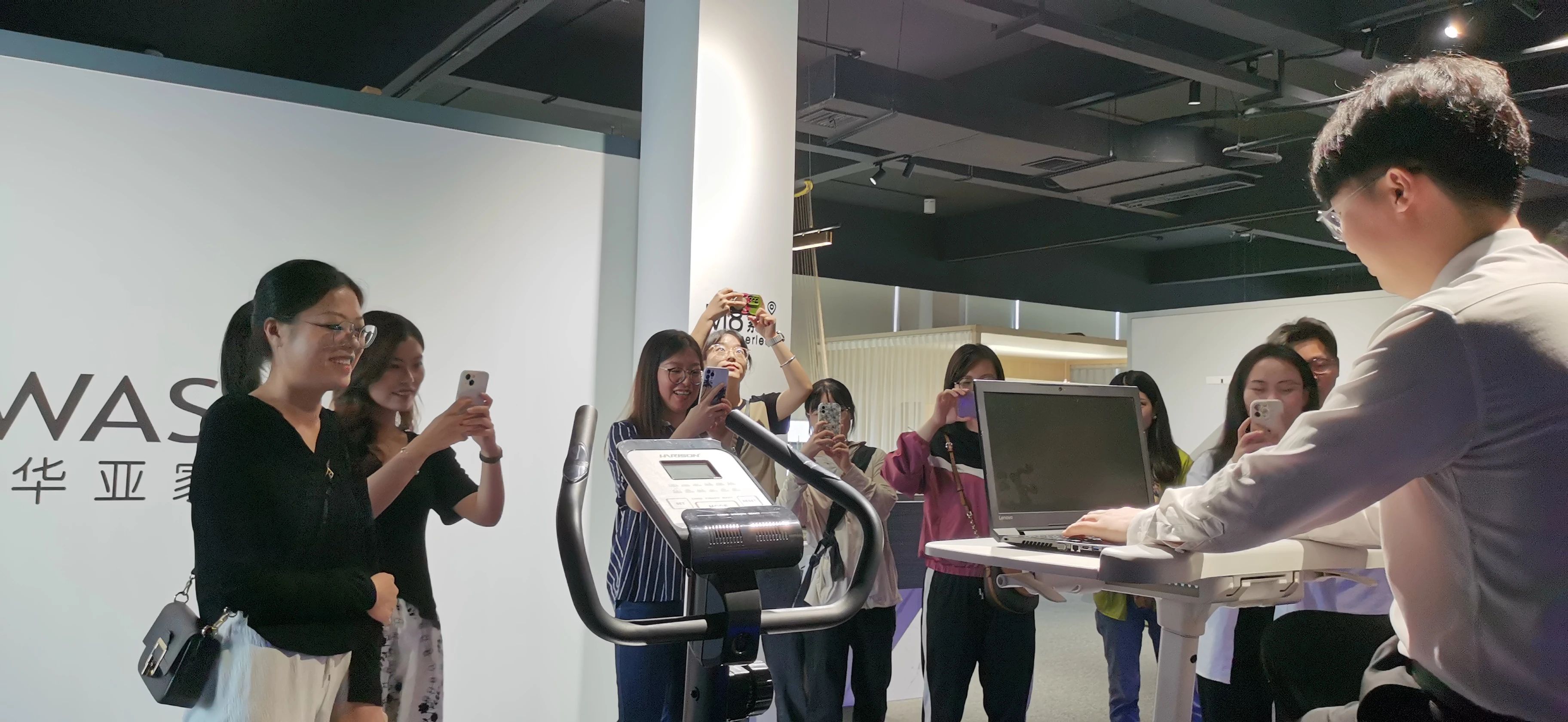 会议结束后,在总经理涂文涛的带领下,重庆对外经贸学院来宾一行在华亚家私的产品体验中心参观体验了智能乐玩产品、椿萱居康养产品和乐玩(中国)产品。